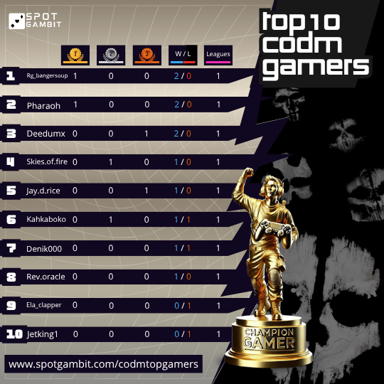 Showing top 30 Call of Duty Mobile esport gamers on Spot Gambit