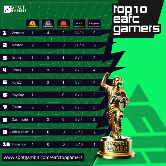 Showing top 30 EAFC esport gamers on Spot Gambit